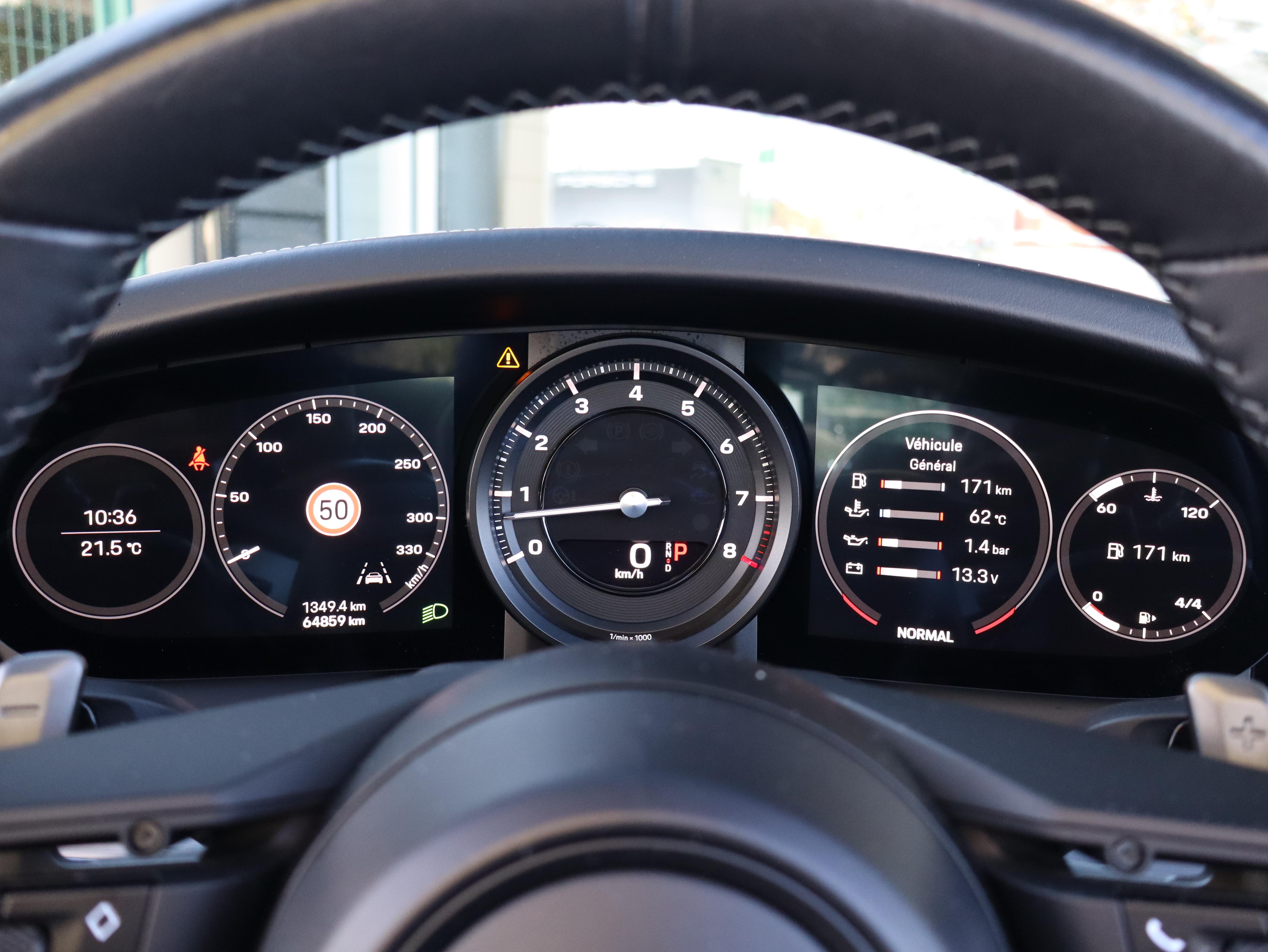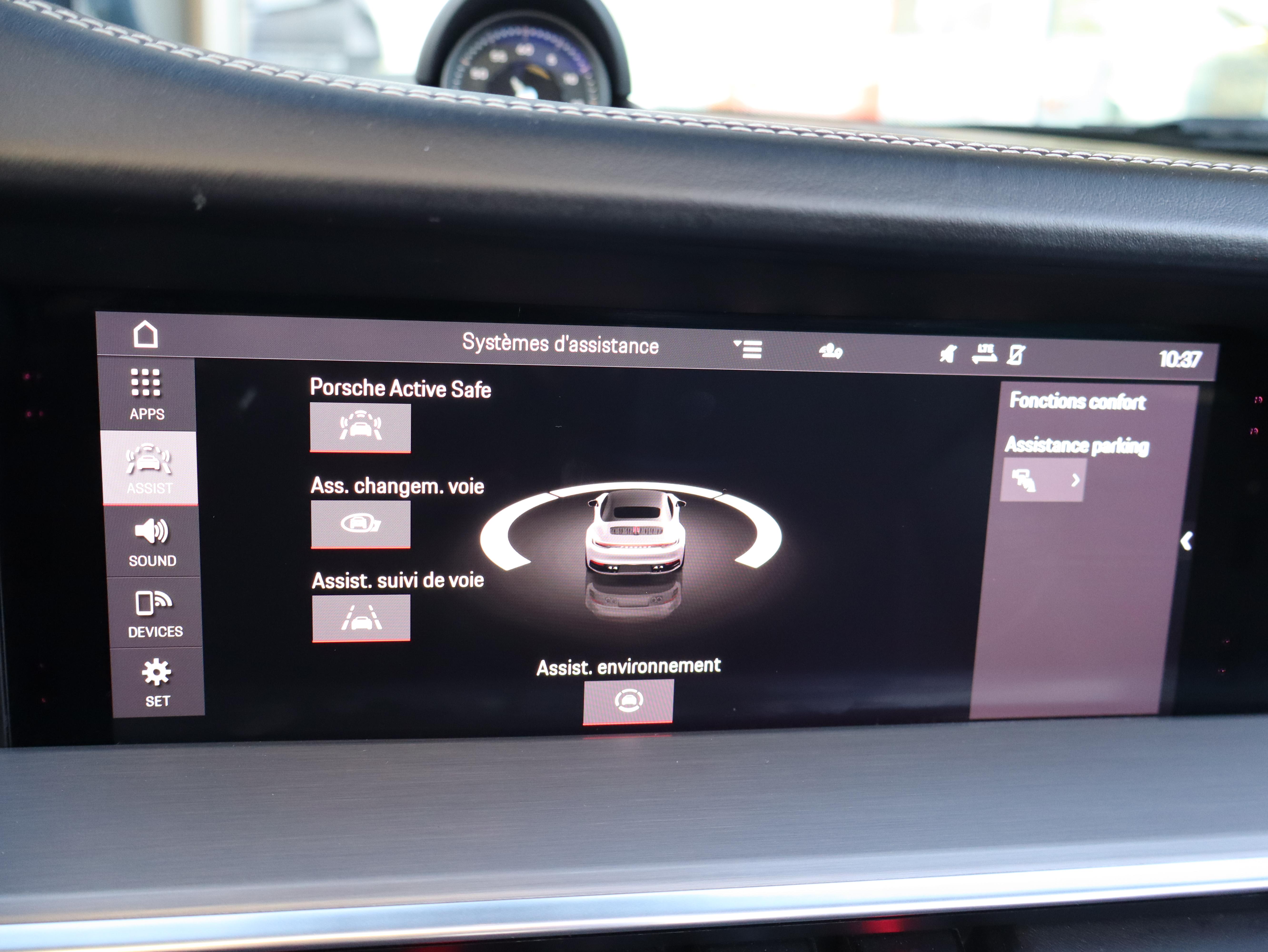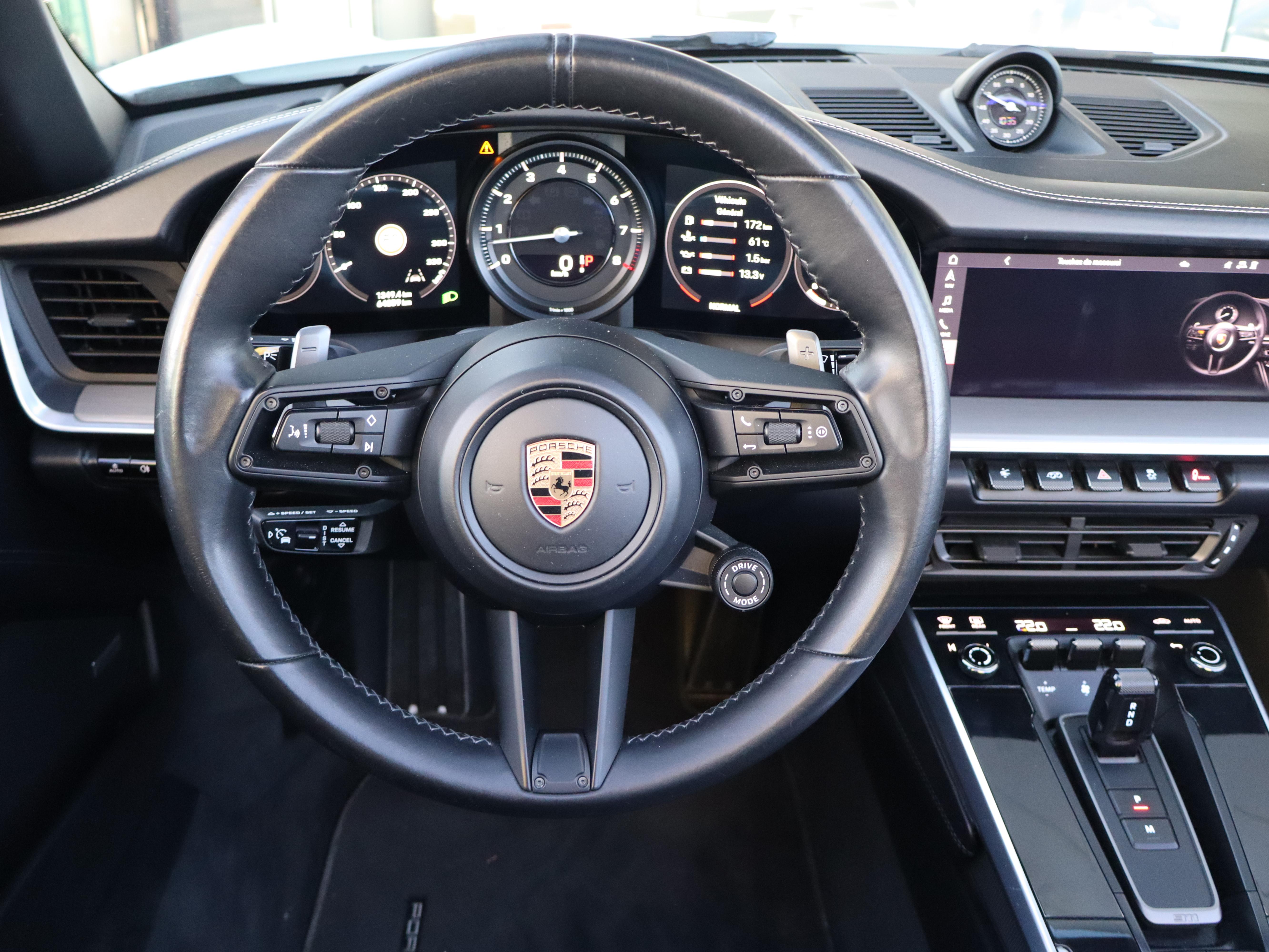315 MHz Volant Sport GT en cuir Servotronic Plus Ecusson Porsche sur appuis-tête AV Pare-brise teinté dégradé Désignation du modèle arrière 911 Assistance parking avant et arrière avec caméra de recul et vue 360° Jantes Carrera S 20/21" "ATTENTION" - Equipements incomplets Boîte de vitesse Porsche Doppelkupplung (PDK) à 8 rapports avec volant bi-masse
